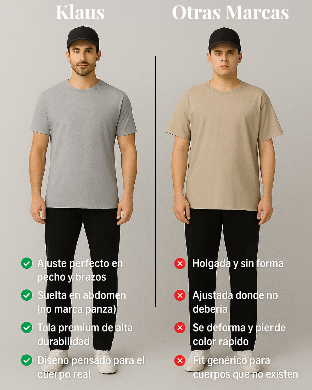 En KLAUS diseñamos cada prenda pensando en vos. Creamos un fit perfecto (Fit Klaus) en hombros y pecho para verte mejor mientras logramos que sea mas suelta en el abdomen, Trabajamos el mejor algodon del pais para que tu prenda dure mas, no se deforme y no se achique